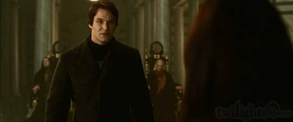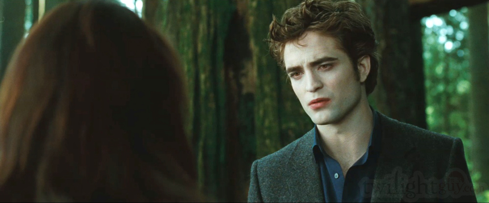 So, at about 1:55 Bella bursts through green foliage, running at top speed, and she is wearing the exact same shirt that she wears while saving Edward at Volterra. Iām thinking that maybe this is a clip from one of her dreams where she is looking for Edward in the forest. If it is, I like the idea of connecting the two scenes by having her wear the same shirt. It's subtle but you know it's done on purpose so that you get a very distinct feeling of deja vous.